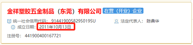 项目管理部经理何世龙于1997年10月至2002年2月,任金祥塑胶五金制品(东莞)有限公司工程师。据企信网,该公司的成立时间为2011年10月,晚于何世龙的入职时间14年。