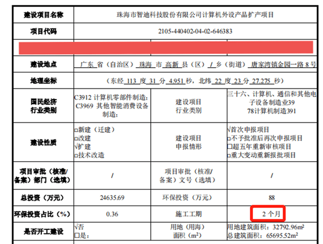 除了募资重复补流外,智迪科技募投项目的建设周期还与公开信息相矛盾。
