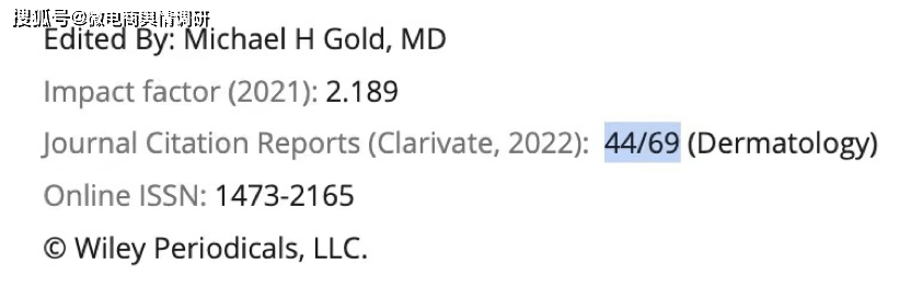 针对该杂志的含金量情况,有医学界人士指出,该皮肤类的杂志排名44(共69名),业内评判标准通常看两个部分:impact factor(影响因子)及分区(从高到低分为1-4个区,分数越高分区越低)。该杂志的impact factor评分仅2.189,在3区,属于末流杂志,在医学技术层面含金量并不高。
