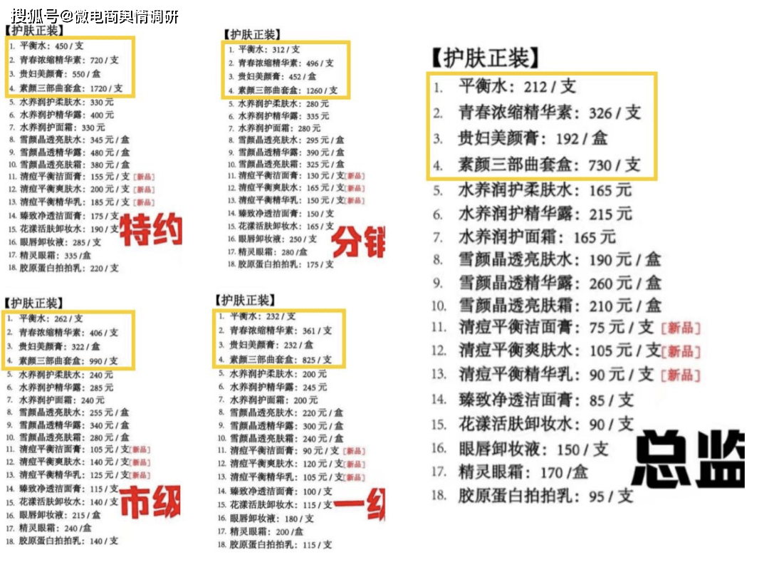 根据麦吉丽进货价目标,以售价2280元/套的“素颜三部曲”为例,从D-A类代理的拿货价分别为1720/套、1260/套、990/套、825/套,而总监的拿货价为730元/套,相当于一套利润1550元。此外,无论哪个层级的代理拿小样都需自掏腰包,麦吉丽会在大型折扣活动中给予各层级一定的小样折扣,鼓励代理囤货用于日常作为礼品送给消费者。