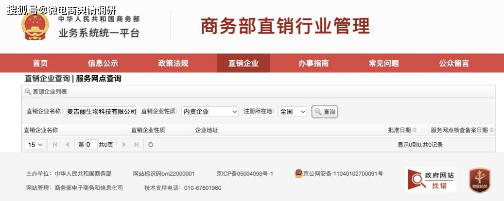 值得注意的是,麦吉丽生物科技有限公司,在商务部直销行业管理信息系统内并未备案,据相关规 定,若无商务许可,任何单位和个人不得从事直销。麦吉丽线上代理及专柜代理均表示未见过企业直销牌照。有业内人士认为,其运营模式符合传销性质。