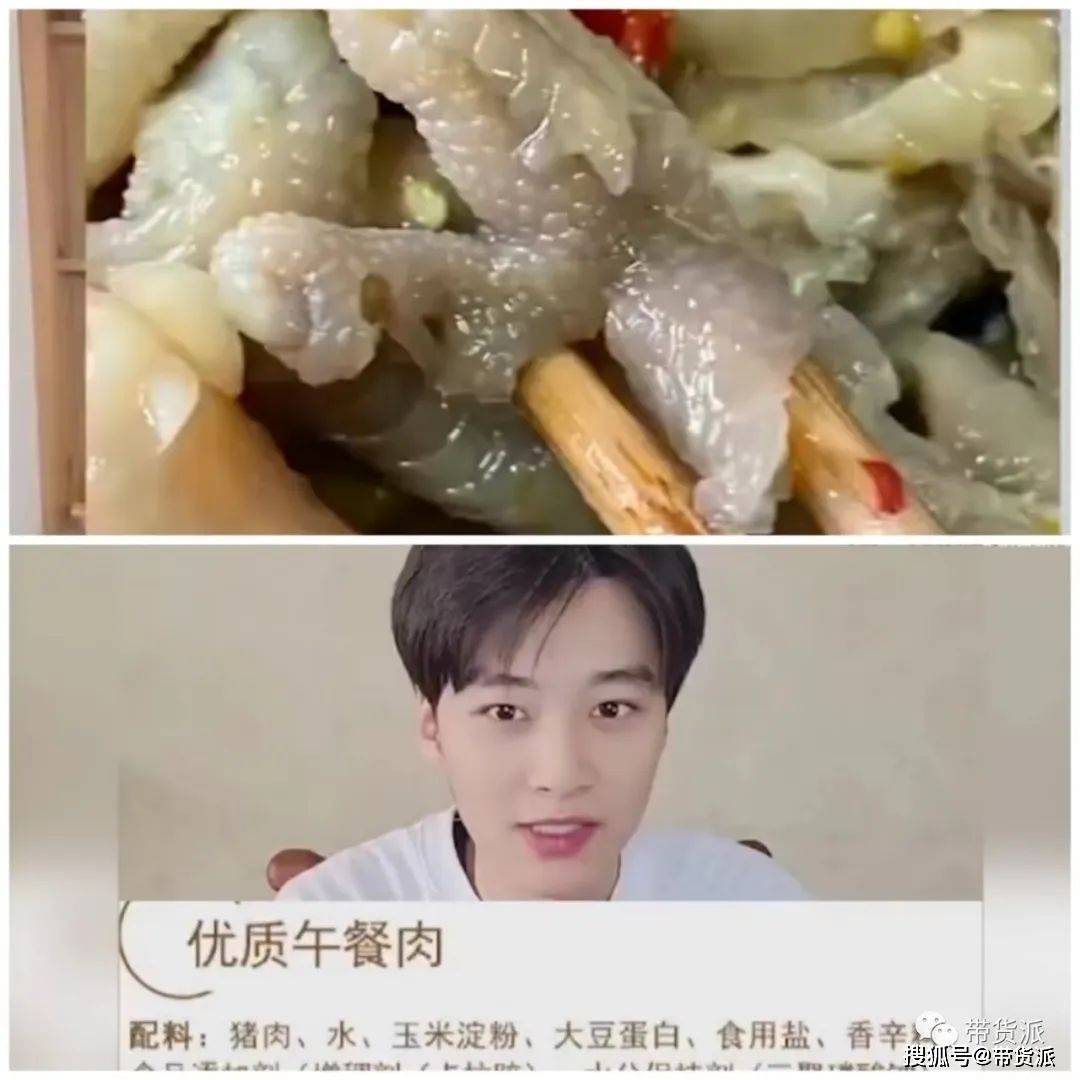 测评“小贝饿了”所带货的纯肉午餐肉时,发现配料表明显有玉米淀粉,根本不是小贝宣传中的“纯肉的午餐肉,没有淀粉”。经查询后发现,产品商家根本没有纯肉午餐肉。因为商品含肉量亦未标明,无法确定是否符合国家生产标准。
