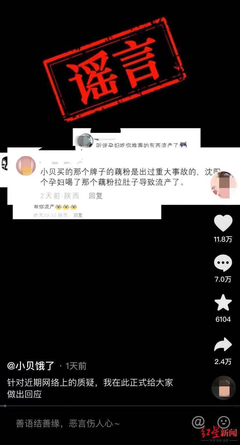 “小贝饿了”发布视频表示自己带货产品并无问题