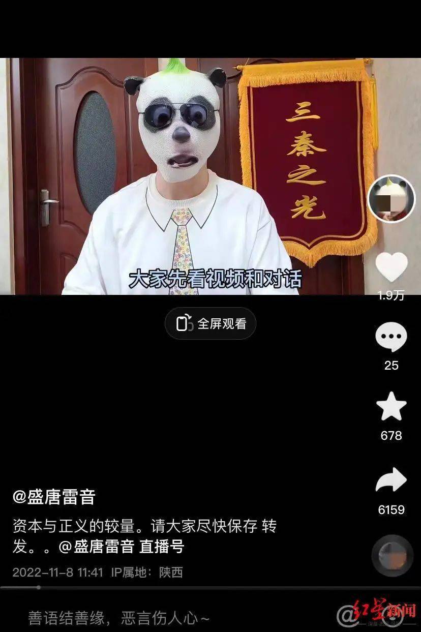 记者注意到,这位“盛唐雷音”博主的IP属地和“小贝饿了”一样都在陕西,其拍摄视频时全程都戴着头套,声音也做了变声处理。从今年10月末开始,其不断质疑“陕西老乔”“丸子汆了”等多个在陕西较有影响力的美食博主带货产品中,存在添加剂超标、食品不符合标准等情况。随后,“陕西老乔”“丸子汆了”等纷纷在平台说明情况并表示道歉,“丸子汆了”甚至表示将不再带货。