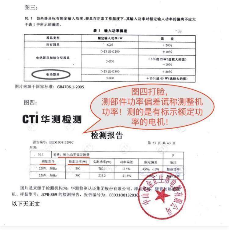 对于厂家的回应,王海也于15日再次发消息表示,“整机额定功率”一说不存在,厂家在声明中谎称整机额定功率300W,但是并未给出检测报告或测试报告;《3C认证证书》表述的“搅拌功率”就是指搅拌电机的功率,“疯狂小杨哥”和厂商自始至终没有宣传或标示过整机额定功率;《声明》附带的《检测报告》附表恰好证明其以次充好。
