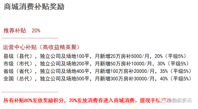 县级(县代),独立公司及场地 100 平,月新增 20 万房补 5000/月,20%(平级 5%)。