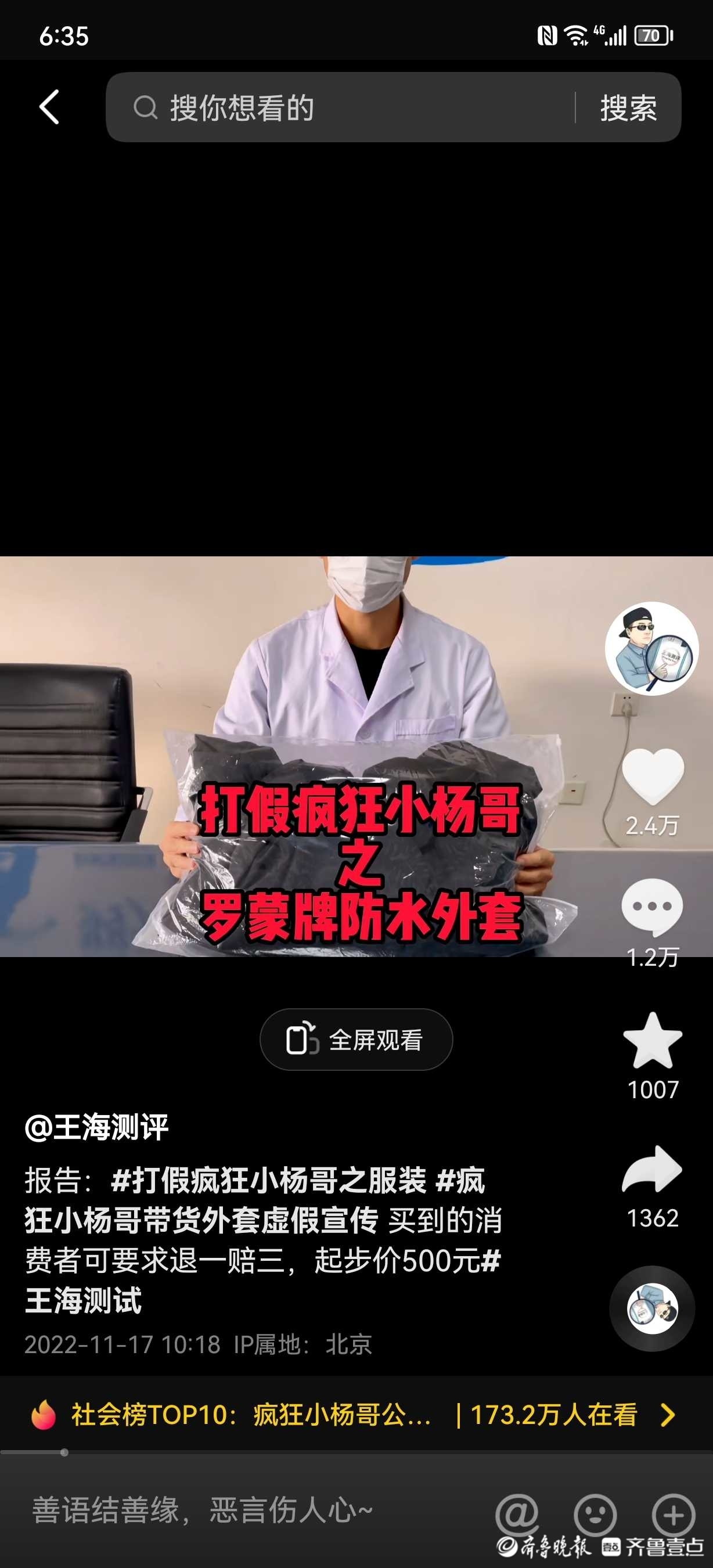 近日,知名打假人王海公开“打假”“疯狂小杨哥”一事引起广泛关注。
