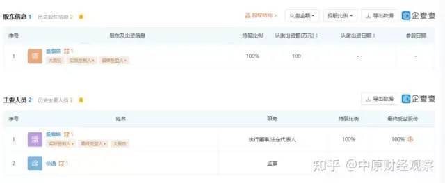 据代理介绍,王云娟就是天谷粮芯的创始人。企查查APP显示,王云娟共与11家企业有关联。她对常州市海畅生物科技有限公司100%控股并担任执行董事兼总经理;投资了江苏中嘉生物科技发展有限公司,持股36.0036%并担任执行董事;投资了常州市冠辰商贸有限公司,持股40%;投资了森麒(上海)生物科技中心,并对该公司100%控股;投资了宁波中宏永信贸易有限公司,持股3%;常州九月菲商务信息咨询有限公司,持股16.7%;投资了常州疆美食品有限公司,持股50%并担任执行董事兼总经理(该公司已注销);是深圳市宝安区新安安顺丰商行、天宁区天宁斯兰扎克冠农艾丽曼食品加盟店、天宁区天宁源记茶吧、深圳市龙华新区龙华国云安商行的经营者,其中天宁区天宁源记茶吧和深圳市龙华新区龙华国云安商行已经注销。