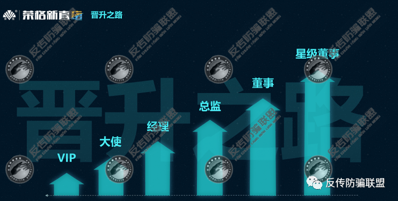在代理级别上,荣格新直店从低到高设立了VIP、大使、经理、总监、董事、星级董事等六个级别。