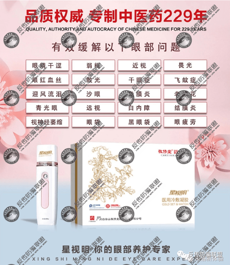 反传防骗联盟留意到,广州白云山医药集团股份有限公司白云山何济公制药厂曾总经销过一款名为“卫目天下护眼喷雾”的产品,该产品曾因虚假宣传被媒体曝光,经反传防骗联盟查询,如今的白云山星视明虽是由白云山敬修堂药业有限公司出品,但两款产品除了名称不同之外,其产品构造及宣传几乎一致,所以白云山星视明是否是“白云山卫目天下”虚假宣传被曝光后的改头换面值得怀疑。