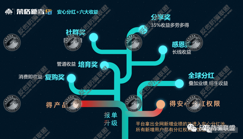 据代理商介绍,在荣格新直店平台购买产品报单升级后不仅能得到产品还能获得安心分红权限,除此之外,荣格新直店还设立了复购奖、培育奖、社群奖、分享奖、感恩奖、全球分红等多个奖励。