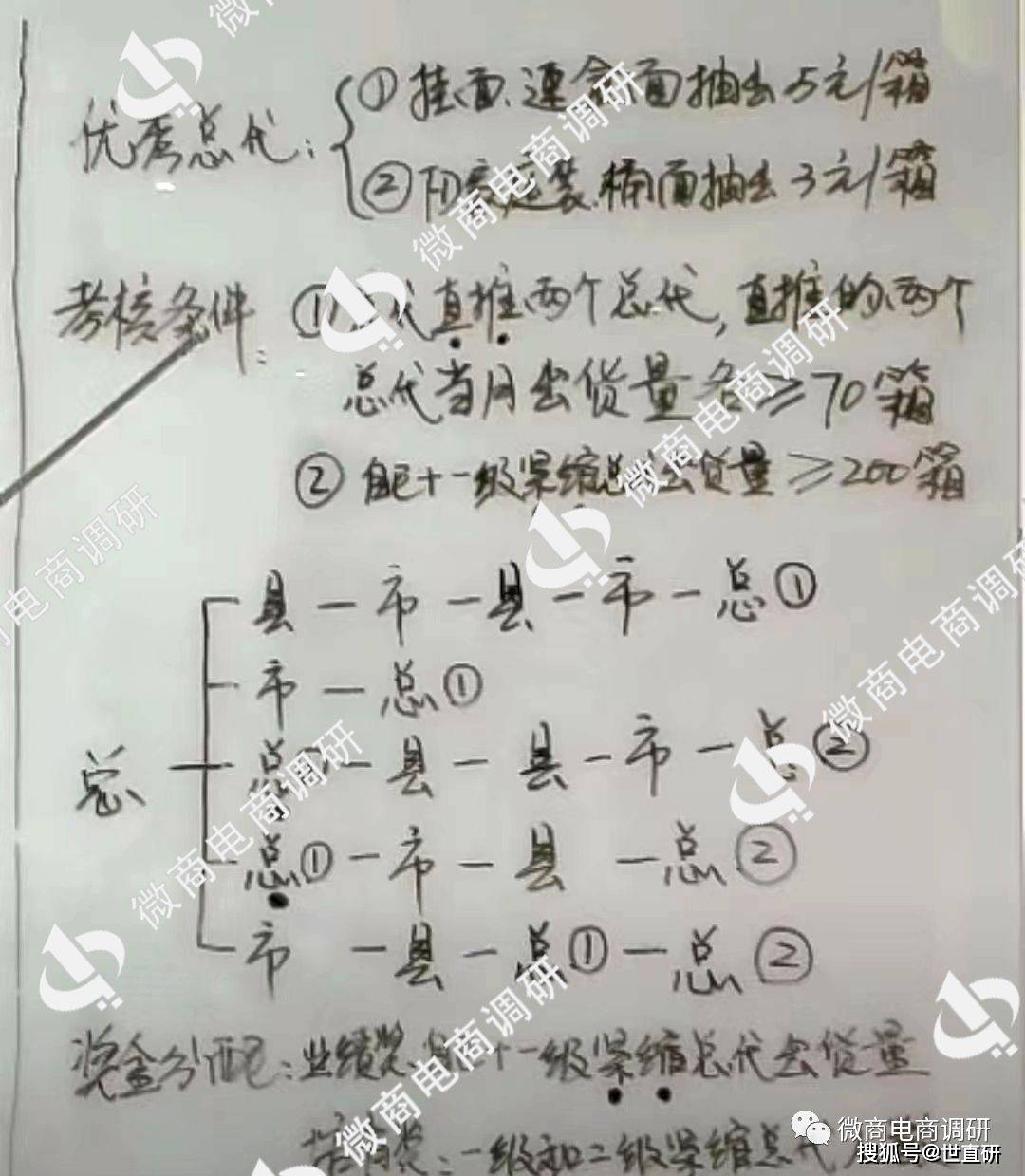 壮面规定,同级别不能向同级别拿货,只能向就近高一级别拿货。在县代、市代、总代三个级别还设有平级奖,分别为8元/箱、5元/箱、5元/箱。