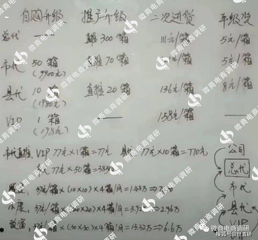 消费9900元购买50箱或直推70箱产品可升级为市代,二次进货的价格为121元/箱;