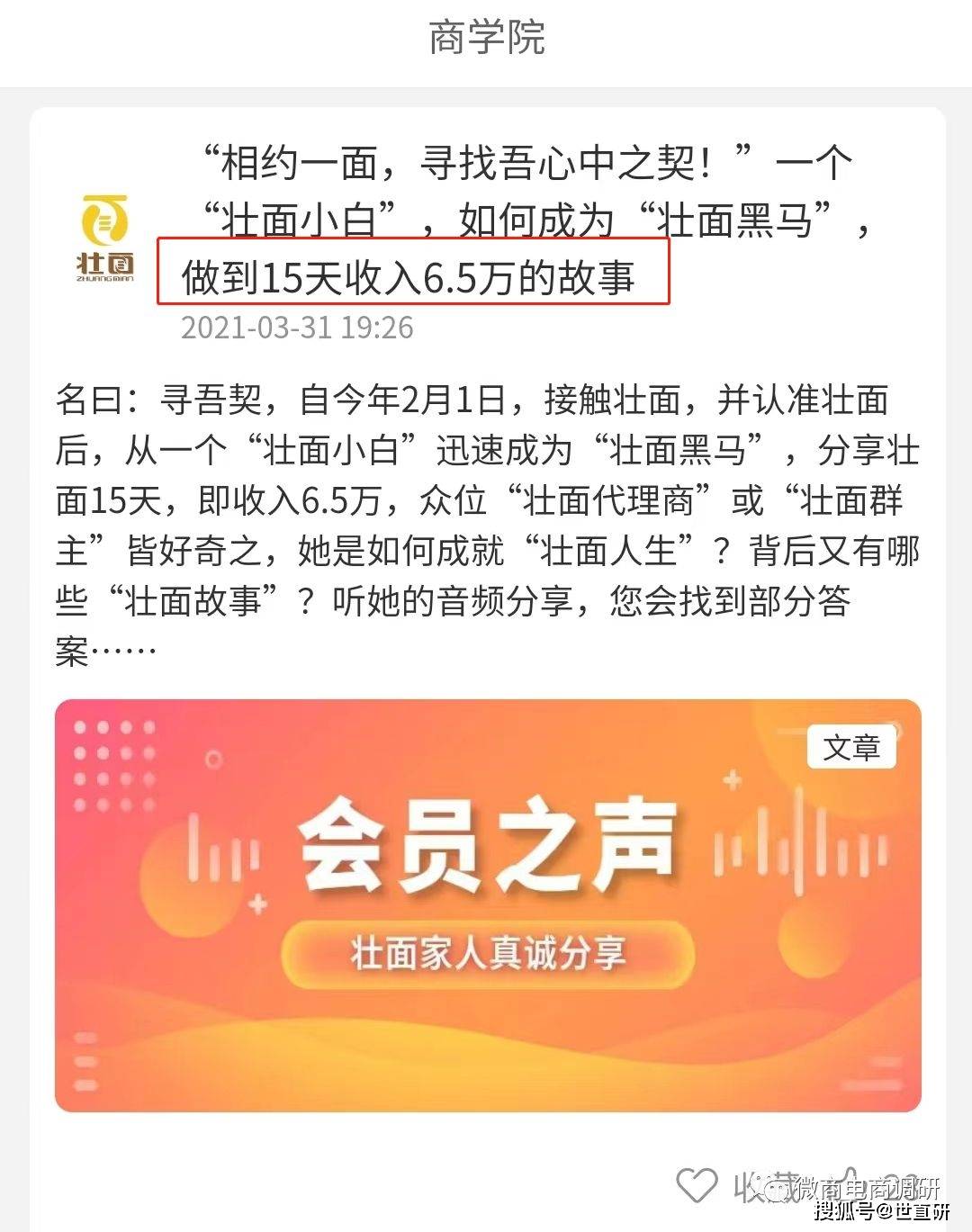 除了在宣传上涉嫌虚假宣传、夸大宣传之外,壮面的模式在网上也被很多人质疑是传销。