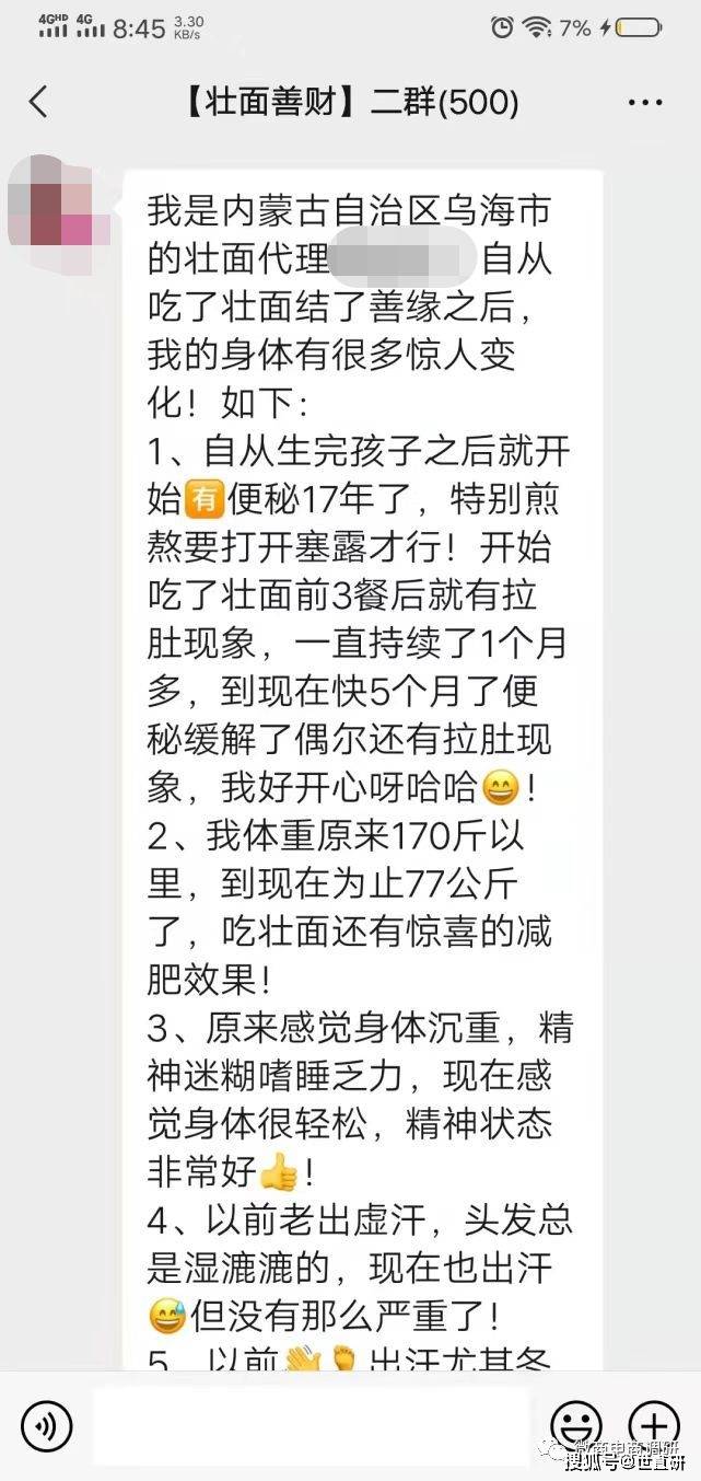 除了调理好了各种疾病外,壮面也成为了这些代理商们的致富良机。在壮面的代理群,推广壮面月收入5万多、7万多的代理商比比皆是,更有甚者,还有用户通过推广壮面一个月的收入高达70万。