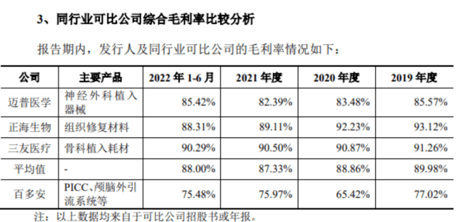 以最新今年上半年为时间,百多安毛利率弱于可比同行平均值超过12个百分点。百多安回应称,由于与上述可比公司的产品在原材料、功能用途、工艺技术等方面存在差异,因此毛利率与同行业可比公司有所差异,但处于合理水平。