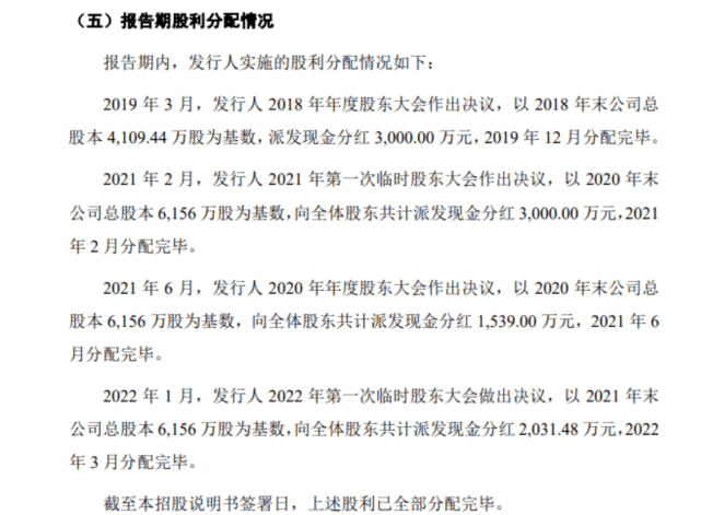 也就是说,除了2020年未进行分红,这三年公司分红合计总额达9570万元。2019年分红占净利润比例高达93%,2021年及今年上半年分红数额都远远超过了当期净利润。