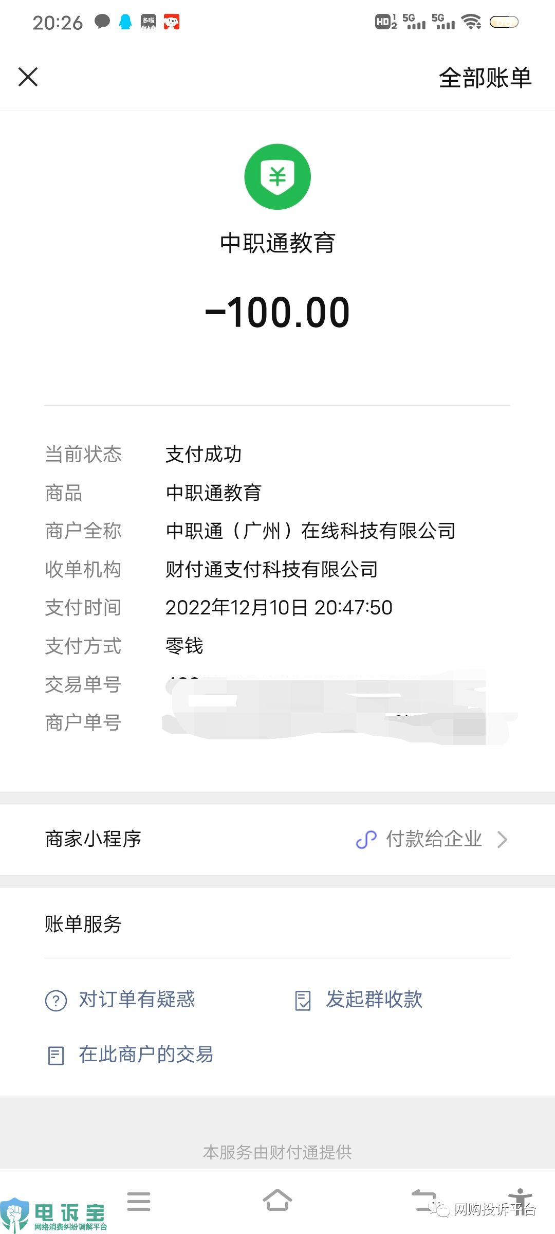 近日,接到用户投诉“中职通”称其迫切让学员贷款付费,后对退款事情缄口不提。
