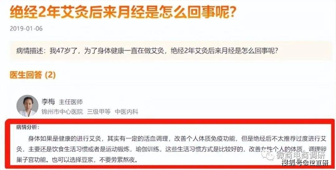 在网络上,曾经有人向医生描述,47岁,为了身体一直做艾灸,绝经两年艾灸后月经来了是怎么回事”?锦州市中心医院李梅主任医师回复称:“艾灸有一定的活血调理,改善个人体质免疫功能,但是绝经后不太推荐过度进行艾灸。