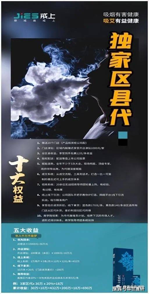 “投资市代总价值超5000万以上。投资150万元,即可成为市级代理。区县代理需要投资30万,即可成为戒上科技的代理,享受七大收益。一、优先回本:拥有20家门店招商名额,直接收益30万元;二、店津贴:本区内100家门店,每家店区代个人直接每家拿1000元,直接收益10万元。三、线上系统:每条烟额外有12元收入,未来一个区可能会有1万用户,每月消耗3条烟,一年市代直接收益是432万元;四、线下拿货:门店只能向区代拿货,市代与区代拿货有20元差价,区内每年消耗10万条,区代直接收益200万元;五、系统培训:价值百万的代理系统培训、《讲师特训营》、《抖音同城引流系统》;六、股票奖励:配送20万元股票,40万期权(合计60万)。七豪华奖励:全球免费游和豪车奖励。总价值2000万以上门店需要投资1.5万,即可成为代理。成为门店级别的代理同样配送1万股票和两万期权。累计收益可达100万元以上。”