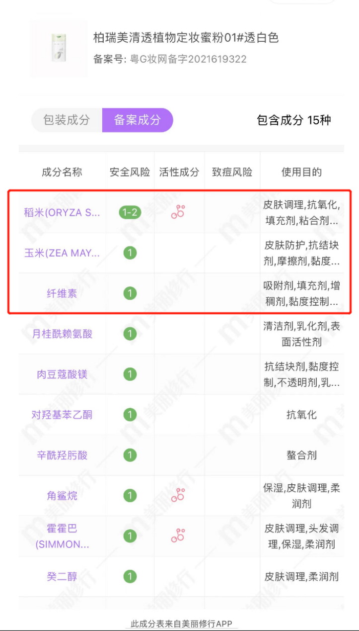 而散粉中滑石粉的替代品主要是玉米淀粉、珍珠粉、硅石、云母等,像悦诗风吟控油矿物质散粉以硅石、云母为填充剂、柏瑞美清透植物定妆蜜粉以植物粉来完全取代滑石粉,采用稻米淀粉、玉米淀粉、植物纤维素和氨基酸衍生物作为主要原料。