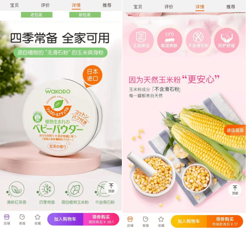 不单单国际品牌,如今在国内市场中,很多品牌也已经弃用滑石粉,许多热门品牌尤其是婴童品牌,都会在商品详情页标明“不含滑石粉”“不含石棉”等,以消除消费者的顾虑。