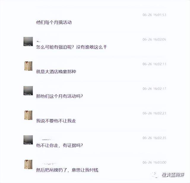 主持人介绍完,就有工作人员前来推销,还有旁边的代理在旁助攻,当时王女士就不想买,谁知工作人员直接把吊牌扯下掉扔了,说不买就不让走,王女士就这样被迫转账了,随后工作人员就把东西塞给王女士转身走了。