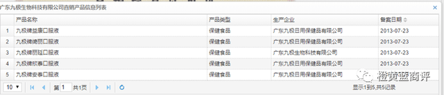 商务部直销行业管理平台数据显示,广东九极生物科技有限公司于2013年7月23日获得直销牌照,获批9个分支机构和73个服务网点,直销产品包括1类5种均为保健食品,5款直销产品均为保健食品,并无内衣。