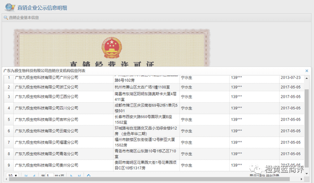 (九极生物的直销分支机构信息)