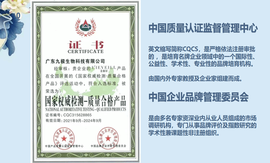 记者在浏览九极真美获得的各项殊荣时,发现有多个荣誉涉嫌造假。其中,由“中国产品质量认证监督管理中心”及“中国品牌企业评价管理委员会”颁发的国家权威检测-质量合格产品证书属伪造。