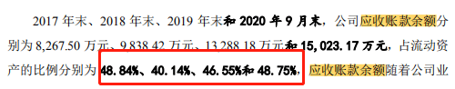 然而不可忽视的是,高额的资产负债率与维克液压的应收账款有关。2017-2020年1-9月,公司应收账款余额分别为8267.50万元、9838.42万元、1.33亿元和1.50亿元,占流动资产的比例分别为56.10%、50.81%、54.99%及48.75%,应收账款金额逐年增加。