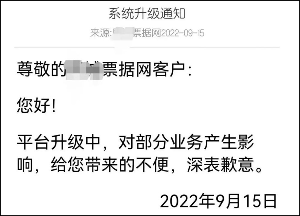 2022年9月15日,同城票据网曾发布系统升级通知称,平台升级中,对部分业务产生影响,此后,其票据交易页面不再对外展示。目前看,同城票据网显然不甘心放弃这块利润丰厚的票据撮合业务,而是选择了改头换面,重起炉灶。
