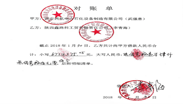 2020年3月3日,西安市未央区人民法院针对原告西航电力石化设备制造公司诉鑫路科公司及李某海民间借贷一案作出一审判决[(2019)陕0112民初19151号]。被告鑫路科公司及李某海于本判决生效之日起十日内向原告西航电力石化设备制造公司偿还借款本金7075830.65元,利息36万。