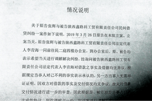 在武先生提供的一份材料中,疑似定边县法院审判员赵某艳书写的《情况说明》称,“根据规定当事人对己不利的事实表示承认的,另一方无需举证证明,因双方对借款的事实及交付情况均无争议,故未对借款交付情况进行进一步的审查”。