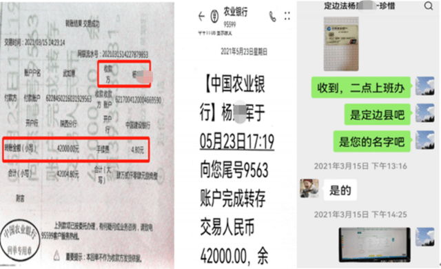 2021年3月15日,杨某军向武先生说,因为案情涉及虚假诉讼,需要向县公安局经侦大队负责人打点,共两个经办人,每人2万元,还有2000元招待费,共计42000元。这笔钱打入了杨某军提供的建设银行的卡号里。2021年5月23日,杨某军因为害怕纪委追究将42000元原路退回。