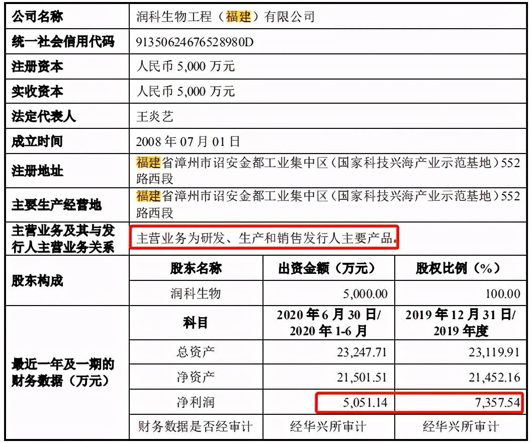 2019年和2020年上半年,福建润科的净利润分别为7357.54万元和5051.14万元,几乎与润科生物同期的归母净利润持平。由此看来,润科生物的绝大部分利润是由福建润科输送的。