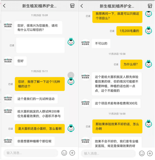 “1元体验、免费检测” 新生植发低价广告被指虚假宣传