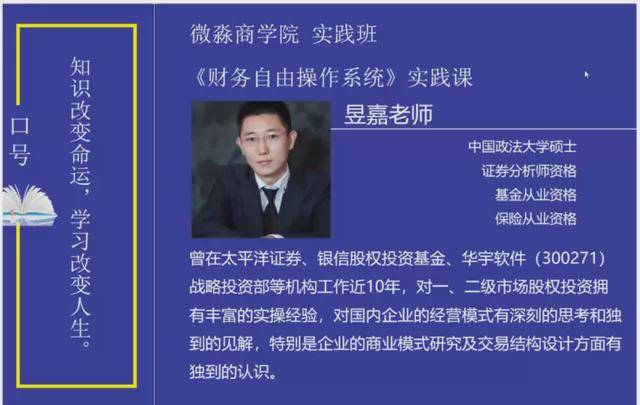 据王翰介绍,自己怀着理财的想法,跟着微淼商学院的卓越导师乔书宁(授课时化名昱嘉)学习,乔书宁在课上称自己的是说他是职业操盘手,自创看盘技术手法秒杀所有人。公然推荐股票和基金,并留作业让学员买。