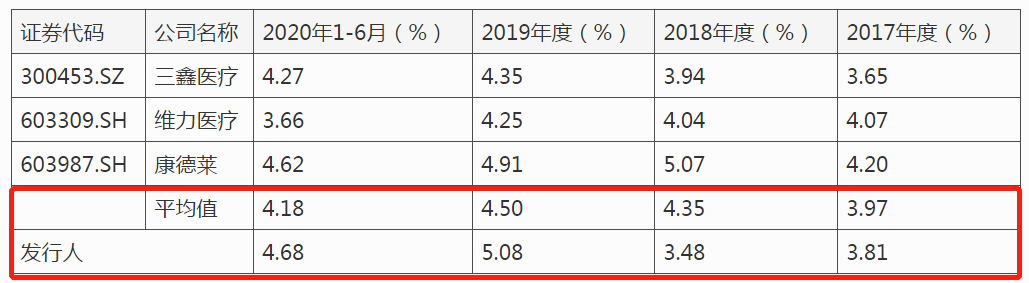 从2017年到2020年上半年,天益医疗的资产负债率分别为30.56%、25.10%、37.40%、40.53%,高于同行业内可比公司平均值的13.49%、28.30%、31.53%、30.12%。