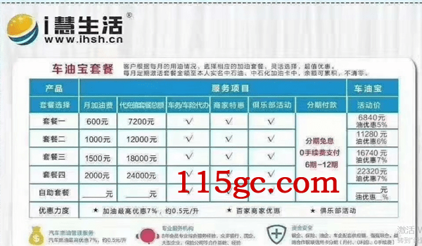 根据新快观察调查,i慧生活主要有两款产品,一个是洗车卡,一个则是名为“车油宝”的加油卡充值业务。依据该公司的规则,会员先支付一笔资金给纵通(厦门)信息科技有限公司,该公司按月返还金额给会员的加油卡,返还总金额会高于会员支付的资金。其有几个套餐,以套餐四为例,会员一次性支付22320后,该公司每月支付2000元到会员的油卡,12个月总共支付24000元。