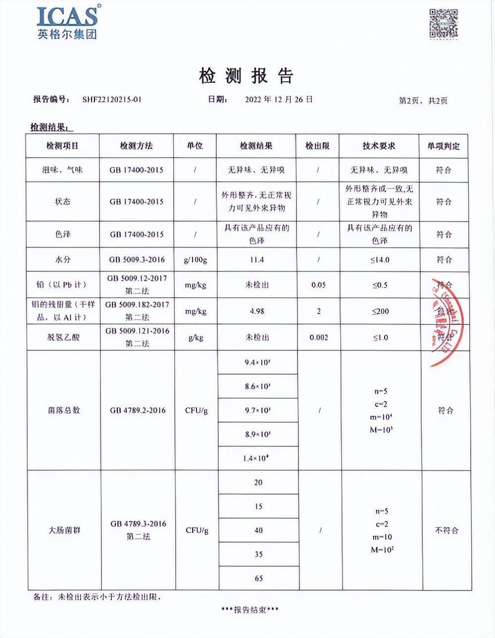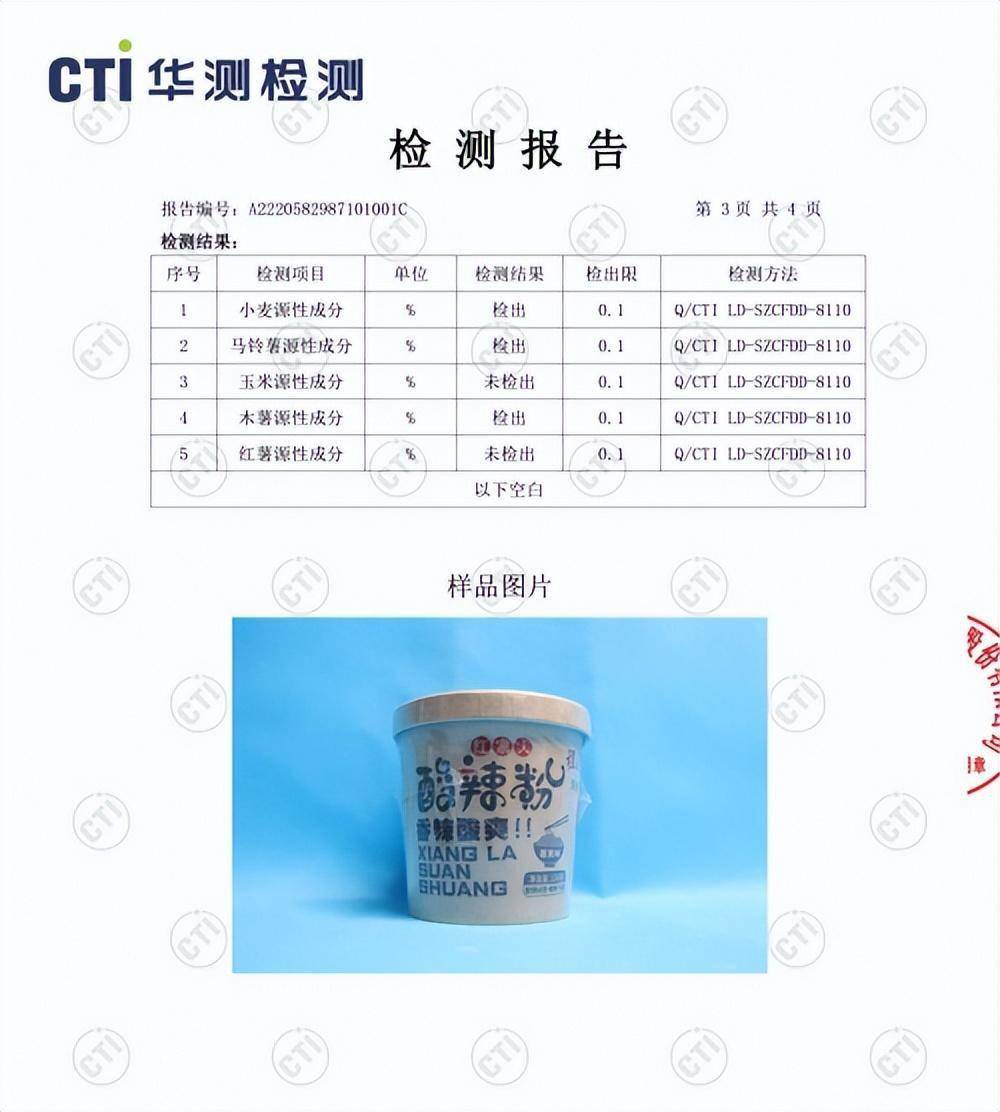 为查明真事实真相,记者将官方网络渠道购买的“程校长酸辣粉”送检上海某检测机构。检测报告显示,“程校长酸辣粉”存在大肠杆菌菌群超标这一食品安全问题,有严重配料造假的食品欺诈现象。