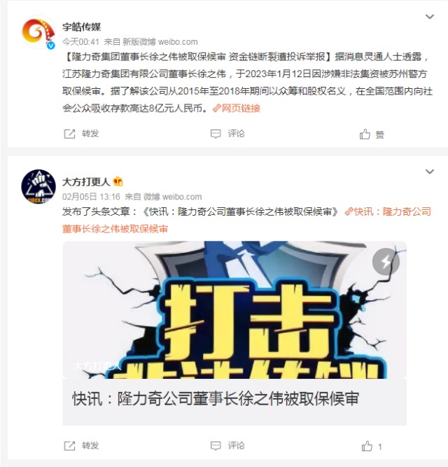 近日,有网友发帖爆料称,江苏隆力奇集团有限公司董事长徐之伟于2023年1月12日因涉嫌非法集资被取保候审。