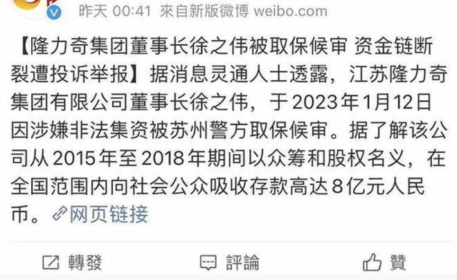 前段时间,多家媒体披露隆力奇董事长徐之伟,在1月12日被苏州警方取保候审,原因是涉嫌非法集资。