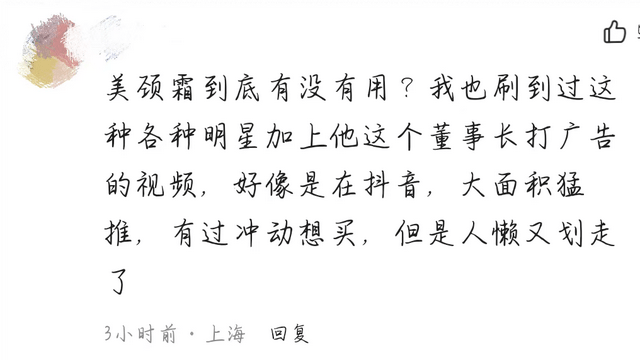有网友表示,不知道这个颈纹棒到底有没有用,她已经刷到过很多关于这个产品的宣传视频。