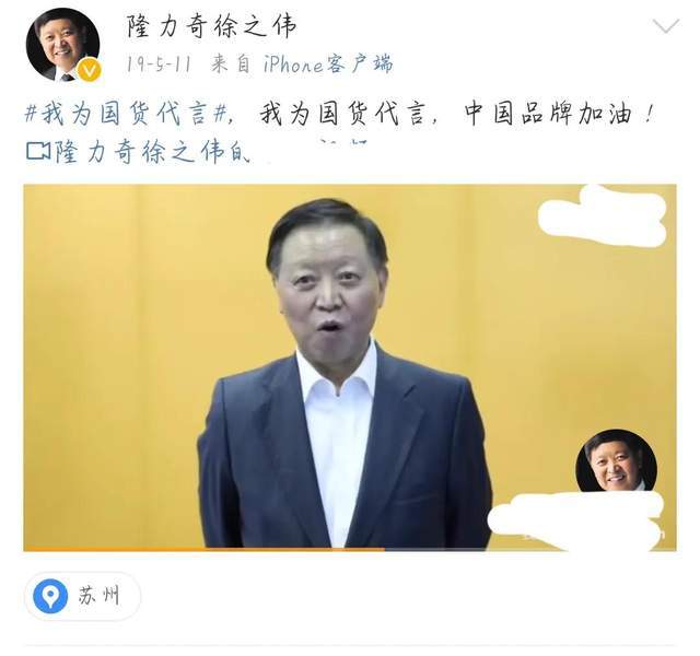 在2019年5月11日,隆力奇董事长徐之伟还曾在社交平台发布了一条动态,并配文:“我为国货代言,中国品牌加油!”