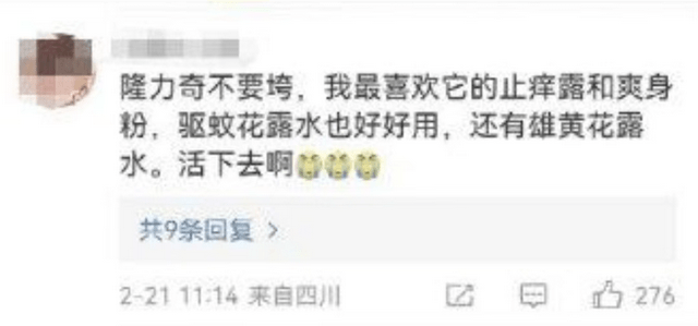 有网友表示,希望隆力奇不要垮,自己最喜欢的就是爽身粉和止痒露了,包括驱蚊花露水、雄黄花露水都很好用,隆力奇一定要活下去啊。