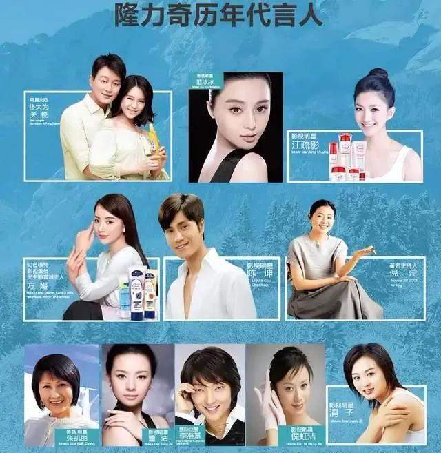 除此之外,隆力奇的明星代言还有董洁、张凯丽、陈坤、倪萍以及韩星李准基等等。