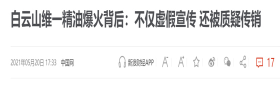 一段时间以来,关于白云山拜博士涉嫌传销的消息不绝于耳。除此之外,另外一款名为白云山维一精油的产品同样被质疑传销,其在互联网的负面舆情一直高企不下。