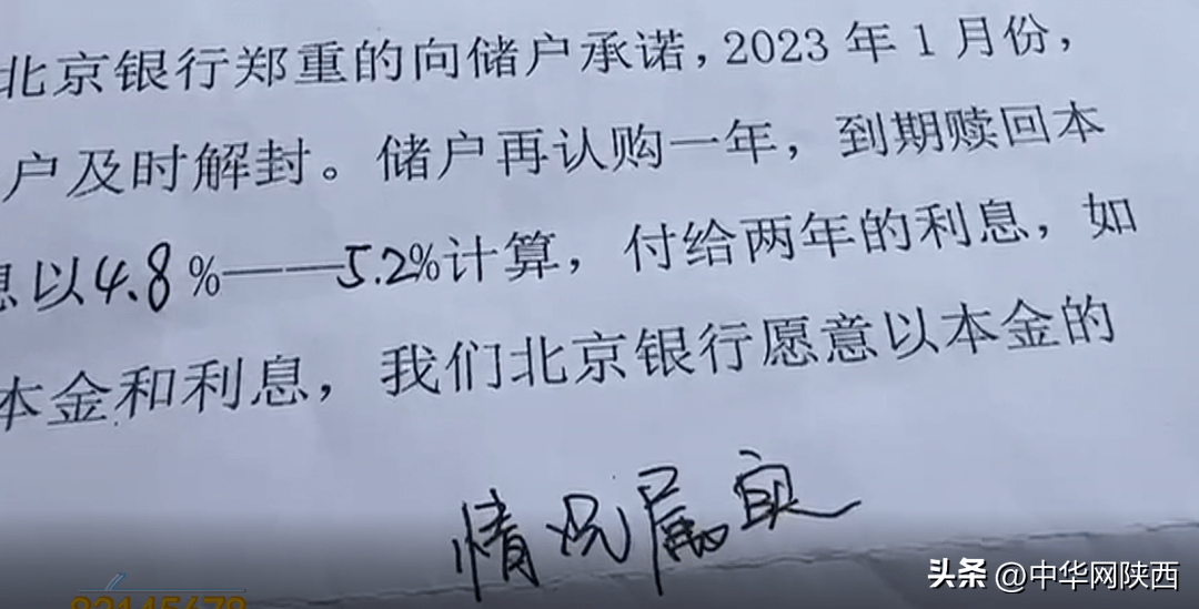 承诺利率、承诺利息,承诺违约金,等等承诺都颇为不严谨。但这份看似不严谨的《情况说明书》,却是北京银行员工刘某本人亲自出具的,有其本人签字手印,还有北京银行西安文景小区社区支行的章子。