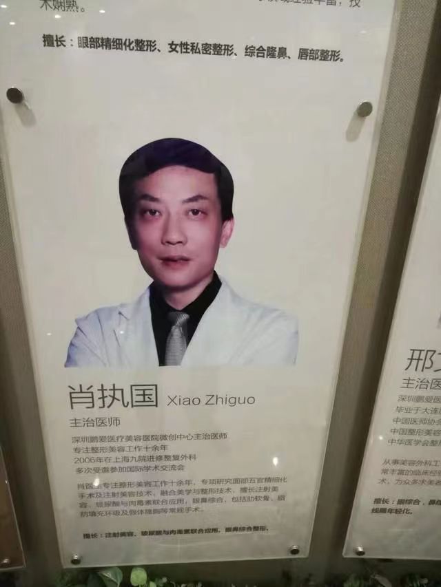2月16日,李先生向记者展示了他于去年在知乎平台发布的帖子被深圳鹏爱医疗美容医院投诉删除的证据,知乎平台客服回复的图片显示称,深圳鹏爱医疗美容医院的投诉理由分别是“深圳鹏爱医疗美容医院没有名叫肖执国的医生”以及“内容不实”。匪夷所思的是,在深圳鹏爱医疗美容医院的墙上,就贴着一位名叫肖执国的医生照片。此外,李先生曾以匿名患者的身份咨询过深圳鹏爱医疗美容医院的网站客服,该医院网站的客服也明确答复称该医院有这个医生。